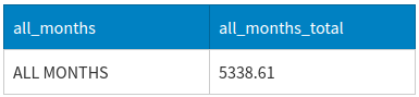 NULLvalue in each, which contains the summary total calculation for all months combined (February and May in this example) in the 'total' column. This is also a super-aggregate row.