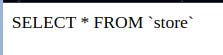 FROM `store`You can pass in optional LIMIT and OFFSET clause values to get() as well if you need any pagination. (MySQL/MariaDB syntax).